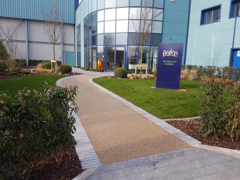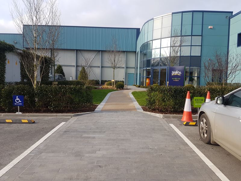 This commercial building is located close to Kilshane Cross, Co. Dublin. The key requirements of the brief were to enhance the aesthetics of the immediate surrounds of the building, thereby creating a more inviting and welcoming space for both visitors and staff. Also, to provide a more distinct separation of pedestrian and vehicular circulation and to provide direction to the main building entrance from the car park bays through the effective use of paving and planting.